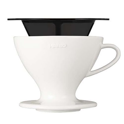 A next-generation coffee dripper! Hario W60 Dripper, yes Hario W60 and not V60! This coffee dripper continues the tradition of the V60s spiral ribbing. The resin mesh feature a flat base that won't obstruct the flow of ground coffee in order to fully extract all the flavor of light-roasted coffee beans. Coffee can be brewed with a paper filter just like with the V60, or through only the resin mesh, which is perfect for savoring all the oils in your coffee. Use both the resin mesh and a paper filter for a crisp flavor unlike any other. W60 Recipe from The Roasting House: Using Resin mesh filter and V60 Paper filter: Ratio 1g:16.5ml Ground Beans: 30 grams Water capacity: 500ml Water 88-92°C Grind level: Medium grind Brew Time: 2:30 - 4:45 mins Start by blooming fast and on circles for 60ml of water, wait 35 seconds, drip slowly for 220ml of water, wait 20 seconds, drip slowly and on circles ending in the middle for 220ml, wait 5-10 seconds and your good to go! 2. Using Resin mesh filter only: Ratio 1g:16.5ml Ground Beans: 20 grams Water capacity: 330ml Water 88-92°C Grind level: Medium Grind Brew Time: 3:20 - 3:30 mins Start by blooming fast and on circles for 50ml of water, wait 30 seconds, drip slowly for 140ml of water, wait 15 seconds, drip slowly and on circles ending in the middle for 140ml, wait 5-10 seconds and your good to go! 3. Using V60 paper filter: Ratio 1g:16.5ml Ground Beans: 20 grams Water capacity: 330ml Water 88-92°C Grind level: Medium Grind Brew Time: 2:30 - 2:45 mins Start by blooming fast and on circles for 40ml of water, wait 30 seconds, drip slowly for 145ml of water, wait 15 seconds, drip slowly and on circles ending in the middle for 145ml, wait 5-10 seconds and your good to go! Details: Color: White Material: Ceramic Capacity: 1-4 cups