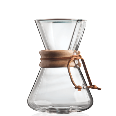 The Chemex is one of the most beautiful coffee brewing equipment out there. This beauty is also exhibited in the soft, subtle notes it produces in the brew. The vessel comprises both the pour over filter holder & glass server with a wooden holder & leather strap. Made with high quality non-porous glass that withstands heat & does not affect the coffee taste.